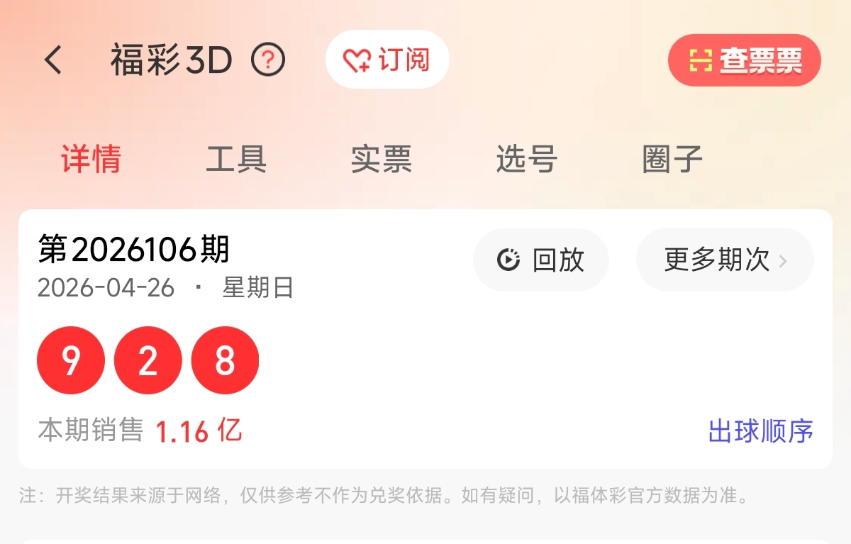 首先让我们回顾一下上期福彩3D第20260106期开奖号码为928,为组六形态,大小比为2:1,奇偶比为1:2,跨度为7,和值为19。