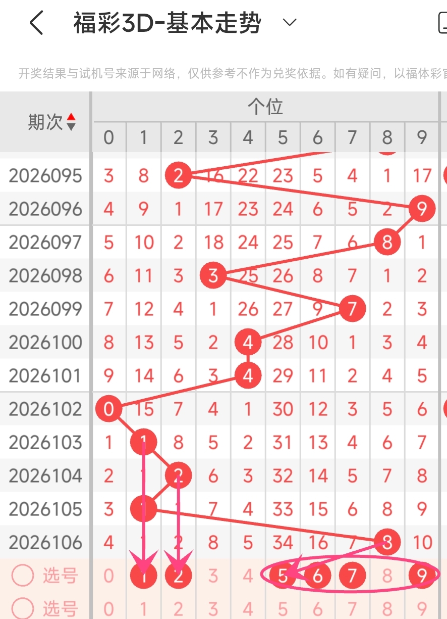 本期个位推荐号码:1,2,5,6,7,9。