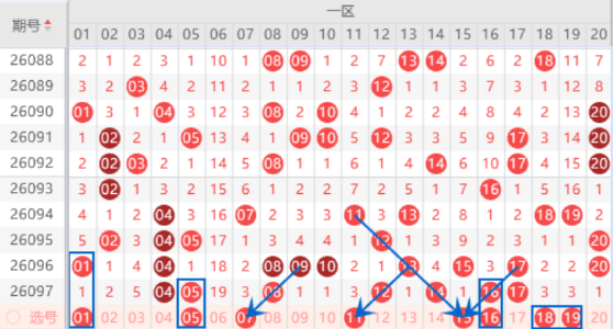 该区间的01 02 03号数字我们注意一下出号情况,其中的01 02号数字我们可以重点关注一下出号情况。本期的06 07号数字我们注意一下出号情况,其中的07号数字可以重点关注一下出号情况。本期的11号数字是属于V型号码,出号机会是有的,我们可以关注一下。上期开出了12 14 16 17号数字,本期我们注意一下出重号的情况,其中的16 17号数字我们可以重点关注一下。本期的18 19号数字我们也还是要注意出一个号码的情况,其中的19号数字可以重点关注一下。