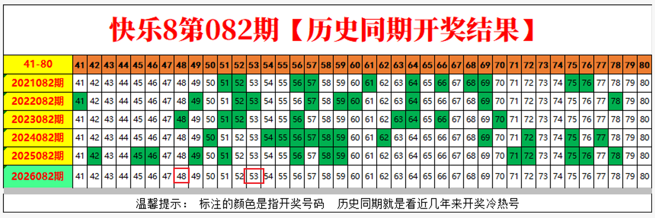 历史同期开奖结果仅做个参考数据即可。以后不会做过多的分析,因为涉及的号码比较多,也无法更细致的体现出来。它不像开奖走势图那样,可以直观的看到,由于开奖期数的限制,所以还是把重心放到常规走势图上。