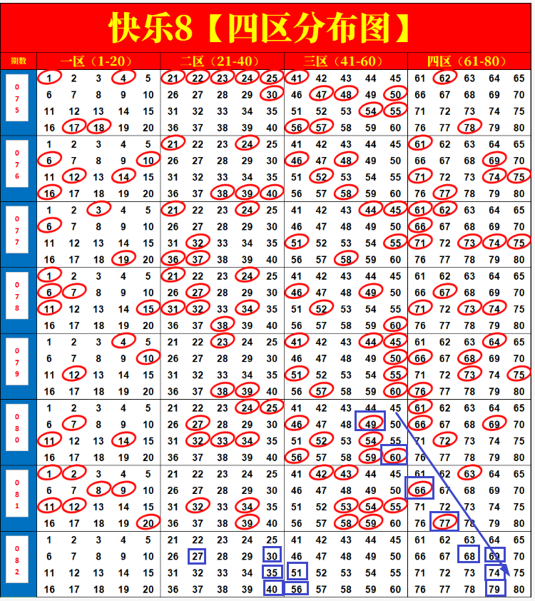 对于快乐8的选号,我着重从四个方面下手,分别是历史同期开奖结果走势、热尾号、四个区间走势。