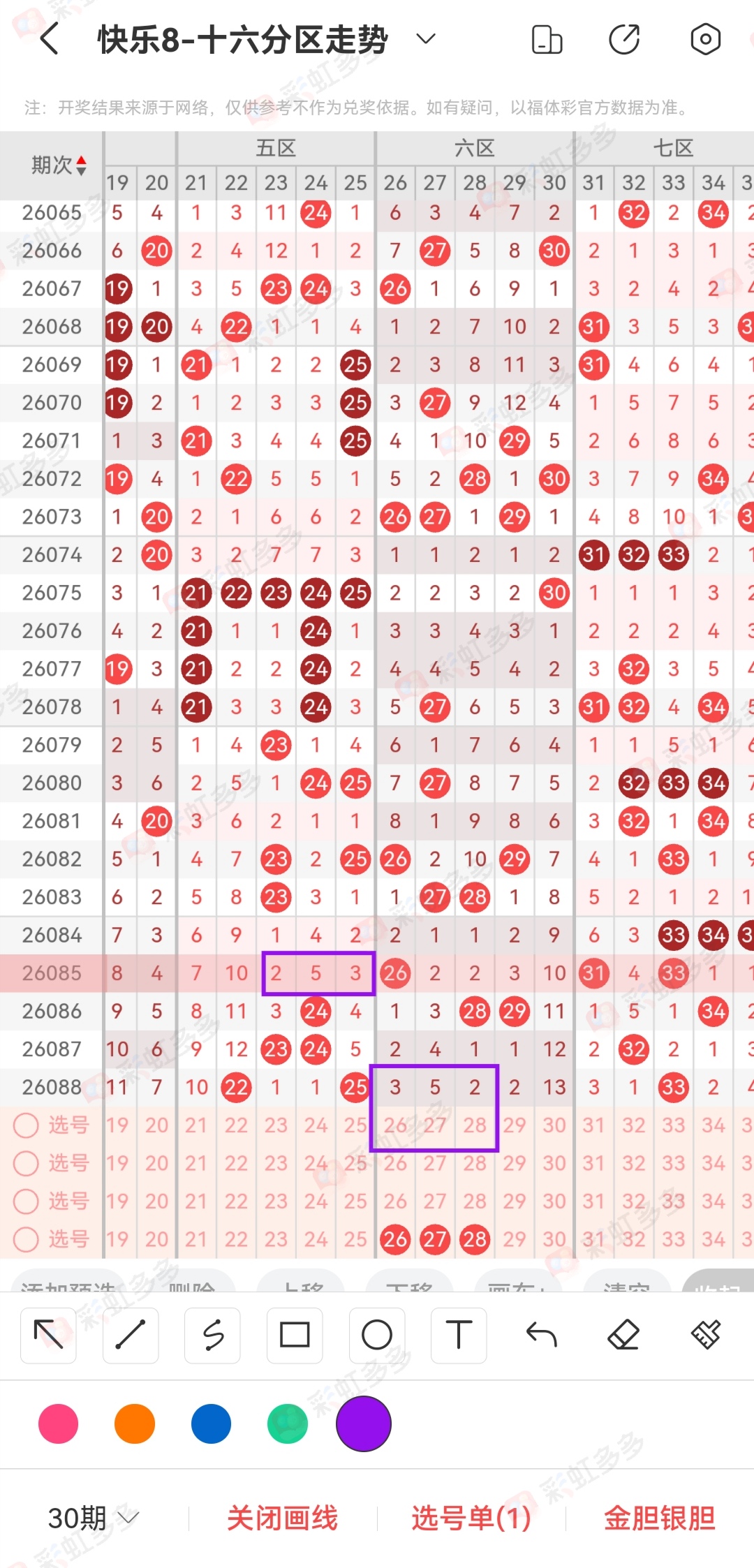 我不知道这里的数据大方向在哪里,比较简单的就是在1头2头顺位,昨天的12 25通过遗漏235期并没有全出来,这里有一个明显的特征,就是新的遗漏235期不给。这样子理解今天的235期可以放弃。这些都是比较单挑的点位。