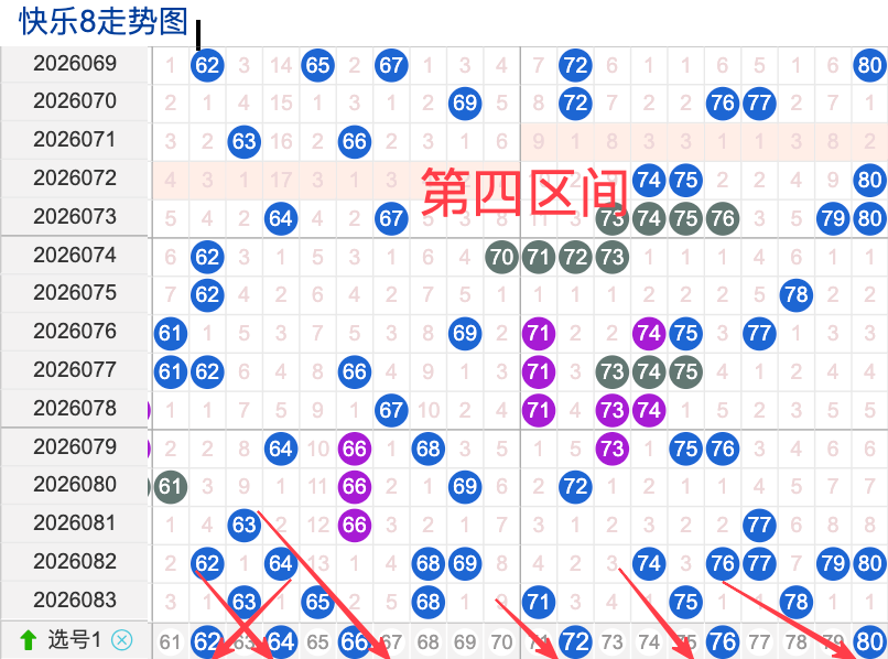 上期四区间开出了6个奖号(63.65.68.71.75.78)上期的四区开6个奖号呈现了一个递减趋势,开出的奖号6头回补3码,7头回补3码,先来看号码62在近 30 期内属于还是稳定的号码,近期出现频率相对热,偶尔会间隔多期后出现一次,这个号码要注意防守,号码64具有一定的间歇性近期活跃度还是很稳定比如有时会间隔3到8期就再次出现,有时会间隔多期,近期整体出现频率比较热,近期还是要关注的.号码76活跃度近期比较热,有一定的间歇性,整体走势有一定的波动性.