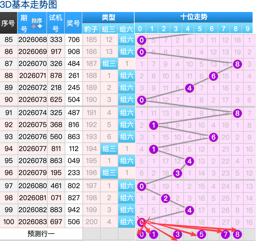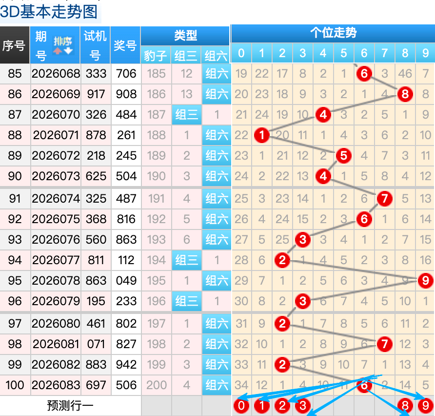上期的3D个位开6号球,上期开出的是组六按照形态的话本期打组六形态,上期的6号球落位是个位上的一个热码4跨回补的号码落位趋势,本期先来看2号球在个位还是有机会继续走小号码的折返落位点这里要注意防守,8号球和9号球是这里的落位点是两个常搭配码的落位点这里注意防守一码就好了也是两个冷热码落位,再看5号球这里注意是一个走出常搭配码落位的顺位回补的趋势要注意防守。