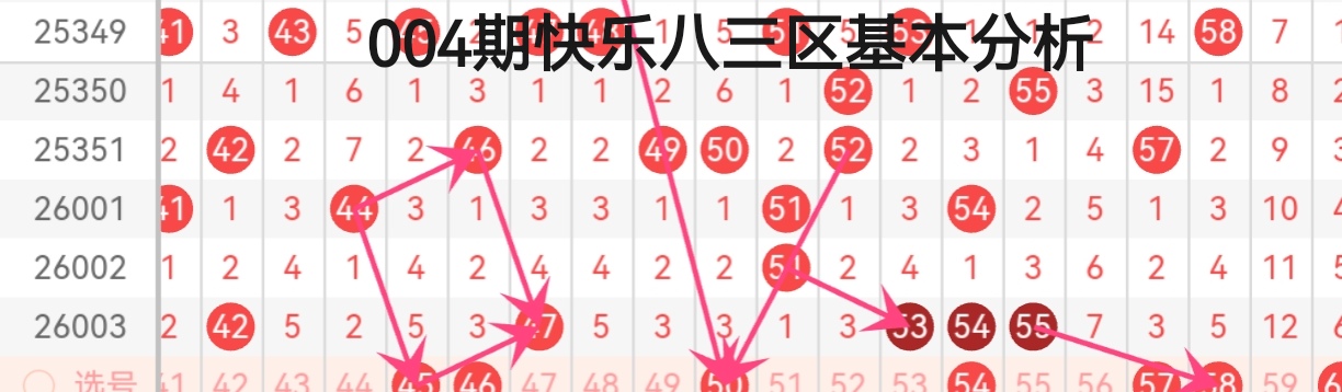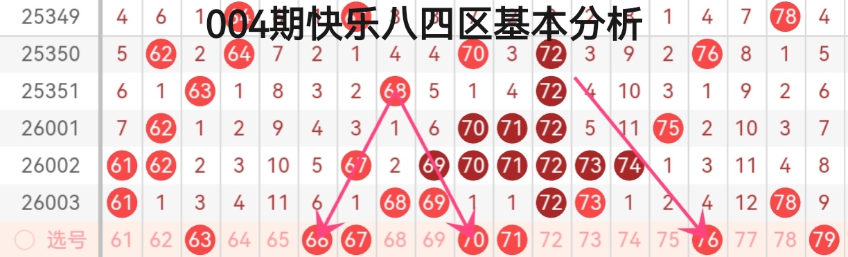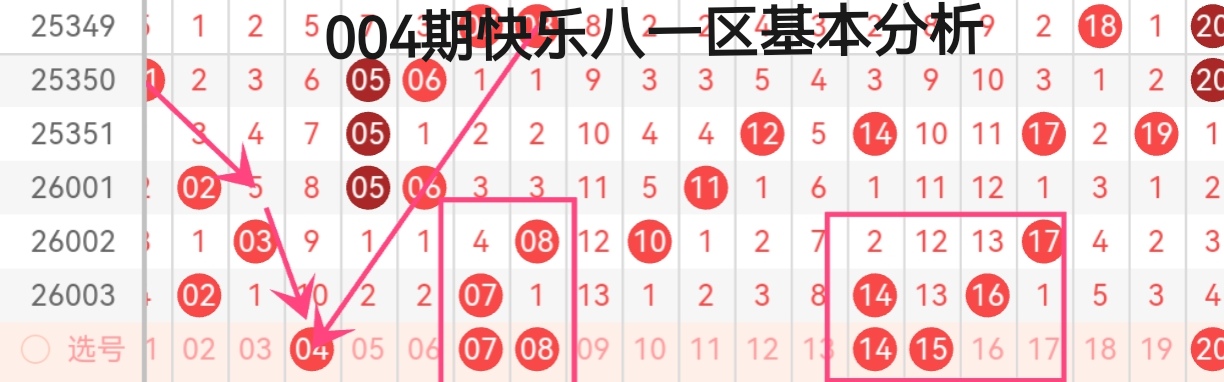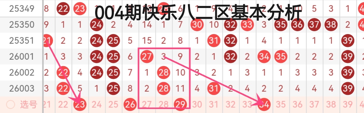 今天咱们用“象限双码分析法”进行004期快乐8的分析: