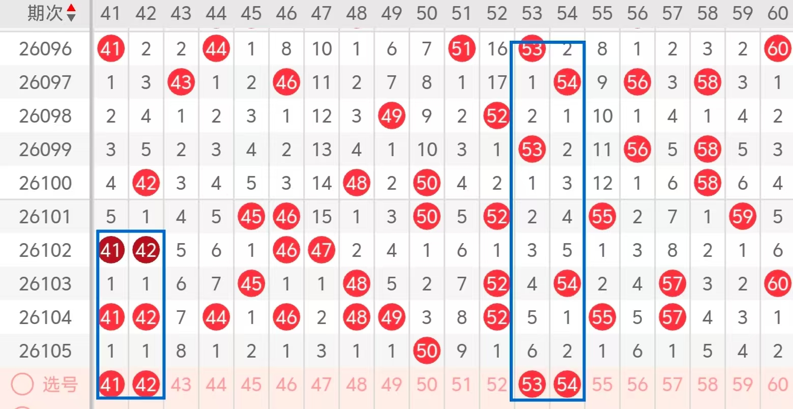 第三区间的走势分析:第三区间上期开出了一个号码球,主要的落号点位在三区间的前半区,走出了一偶的形态走势,上期三区间的前半区落下了一个号码球,后半区没有号码球落下,整个三区间处于走冷的趋势,根据三区间的走势规律,今天的三区间我们主看龙头位置41 42姊妹对号码的落位,落下一码的机会还是很大的,再看53 54姊妹对号码的落位,落下一码的机会很大,注意42 53的组合,这四个号球建议大家打个四胆拖,或者打个四码复三比较稳妥,参考为主!