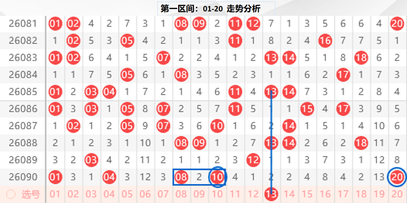 一区分析:【01-20】(走势图标注号码非小黄车大底,请谨慎参考,具体思路将在直播间分享讨论)
