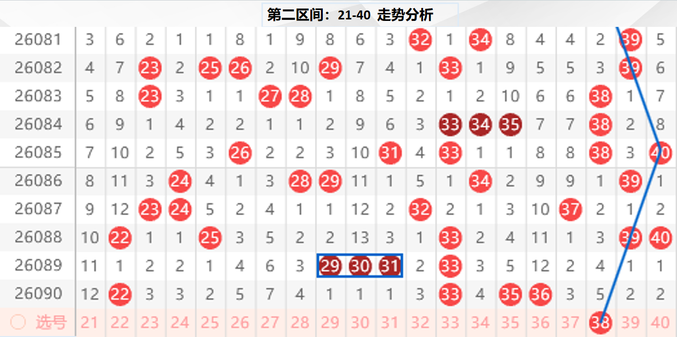 二区分析:【21-40】(走势图标注号码非小黄车大底,请谨慎参考,具体思路将在直播间分享讨论)