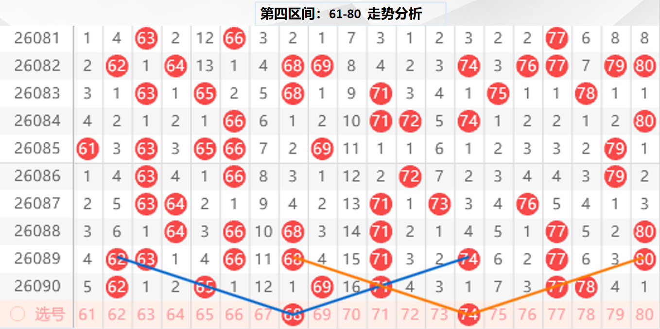 四区分析:【61-80】(走势图标注号码非小黄车大底,请谨慎参考,具体思路将在直播间分享讨论)