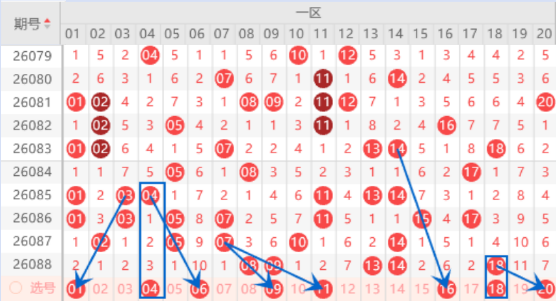 该区间的01 03号数字是属于交叉对称回补号码,本期我们注意出一个号码的情况,其中的01号数字可以重点关注一下。本期的06号数字我们注意一下出号情况,属于遗漏10期的号码,本期遗漏6期的号码有3个出一个号码的机会是有的。本期的11 16 20号数字都是属于空三中心号码,本期的空三中心号码有4个,出一个号码的机会是有的,所以本期的11 16 20号数字我们可以重点关注一下,这里是有机会出2个号码的。该区间的重号我们关注一下09 18号数字出一个重号就行了。