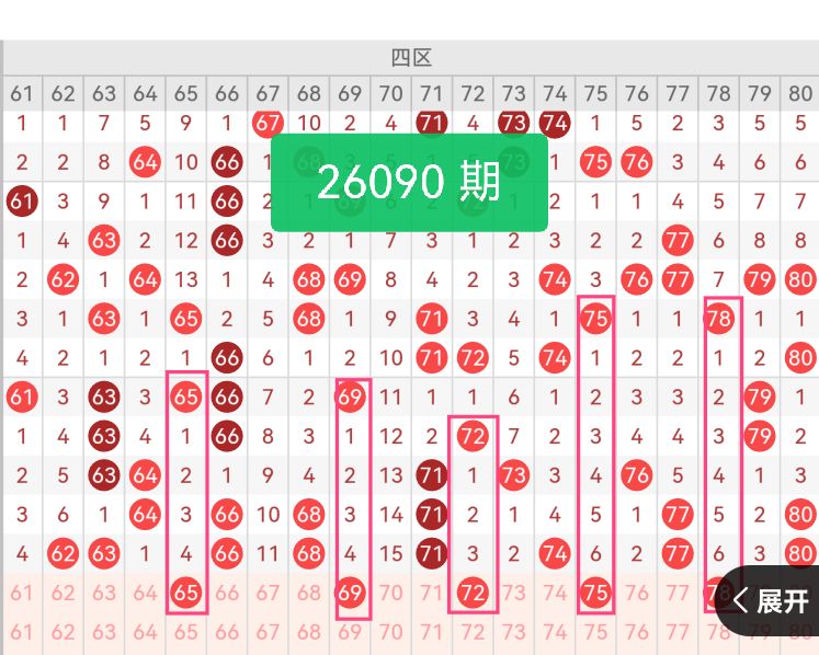 第四区间号码推荐:【65 69 72 75 78】