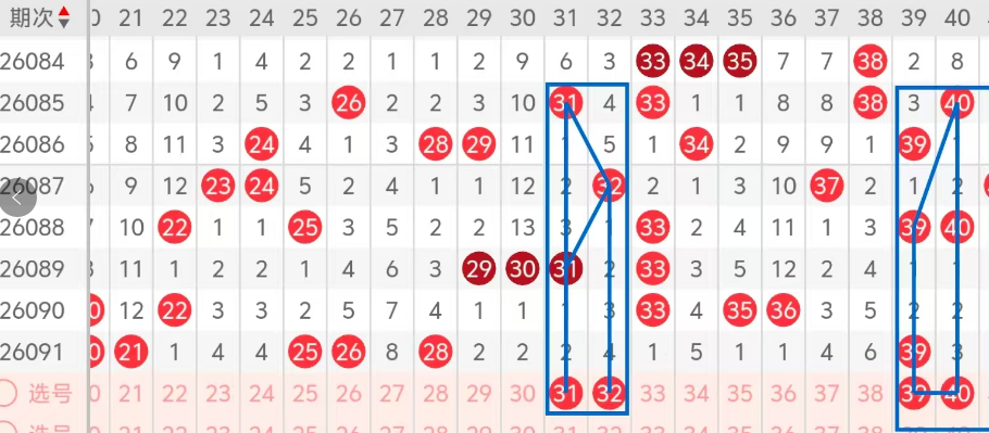 第二区间的走势分析:第二区间上期开出了五个号码球,主要的落号点位在二区间的前半区,走出了三奇两偶的形态走势,上期二区间的前半区落下了四个号码球,后半区落下了一个号码球,整个二区间处于走热的趋势,根据二区间的走势规律,今天的二区间我们主看31 32姊妹对号码的落位以及39 40姊妹对号码的落位,注意31 39组合,32 40的组合,这四个号球建议大家打个四码复三,或者打个四码复二比较稳妥,参考为主!