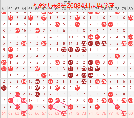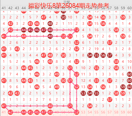福彩快乐8是从01-80个号码中每期开出20个号码,我们把80个号码分为四个区:一区01-20号,二区21-40号,三区41-60号,四区61-80号