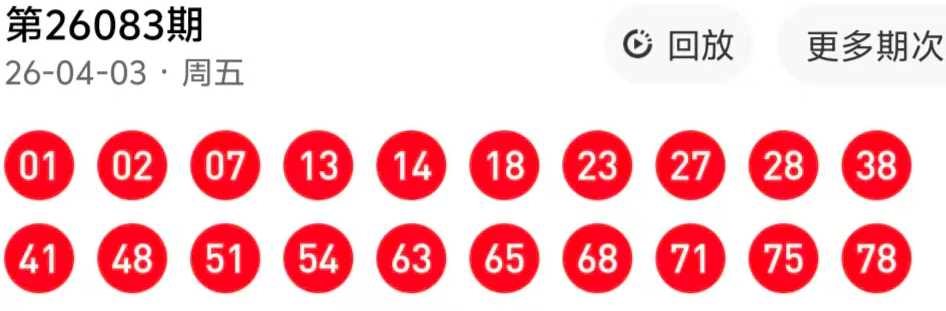 福彩快乐8第84期推荐 上期中出38 41 75 78