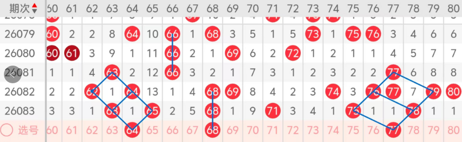 第四区间的走势分析:第四区间上期开出了六个号码球,主要的落号点位在四区间的前后半区,走出了四奇两偶的形态走势,上期四区间的前半区落下了三个号码球,后半区落下了三个号码球,整个四区间处于走热的趋势,根据四区间的走势规律,今天的四区间我们主看前半区夹码64的回补,也走出了对称斜连码的走势,再看68的三重码,最后关注77的落位,走出了斜连码走势,这几个号码球的落位,这三个号球建议大家打个三胆小拖,或者打个三码复二比较稳妥,参考为主!