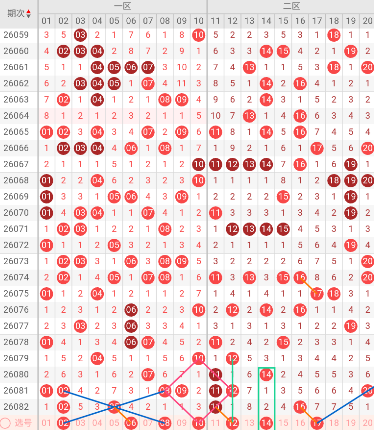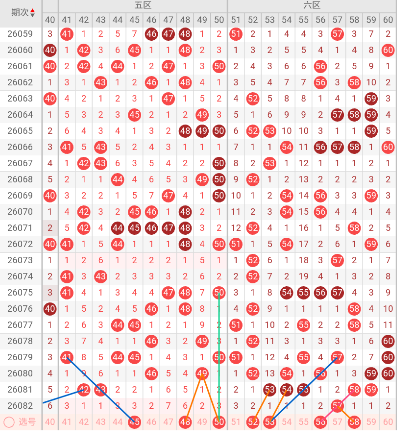 五区开出:(未出号),上期开出0个号码,本区空开。上期出现断区,根据历史规律断区后,下一期往往会进行回补,而且回补数量一般在2-3码,有时甚至会一次性补齐成热区。