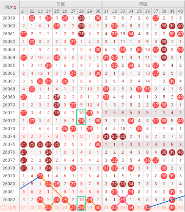 四区开出:33,39 奇偶比: 2:0 和值:72 跨度:6,上期开出2个号码,奇数号码占优势。近期四区的断区频率明显高于其他区,从趋势看,呈现缓慢收缩态势,本期出号可能进一步降至1-2码。