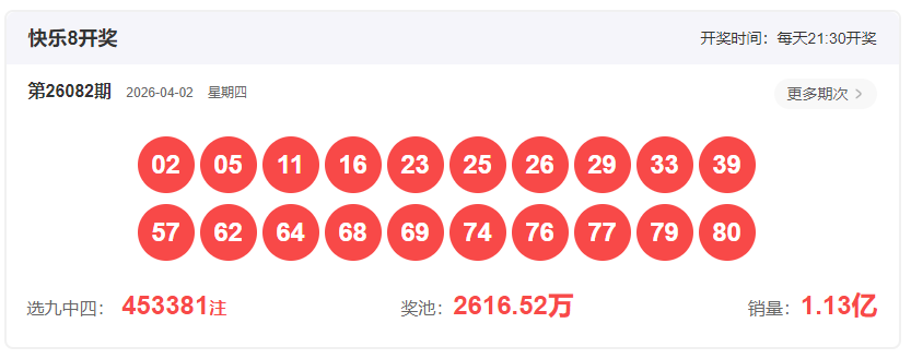 快乐8第26083期的分析如下: