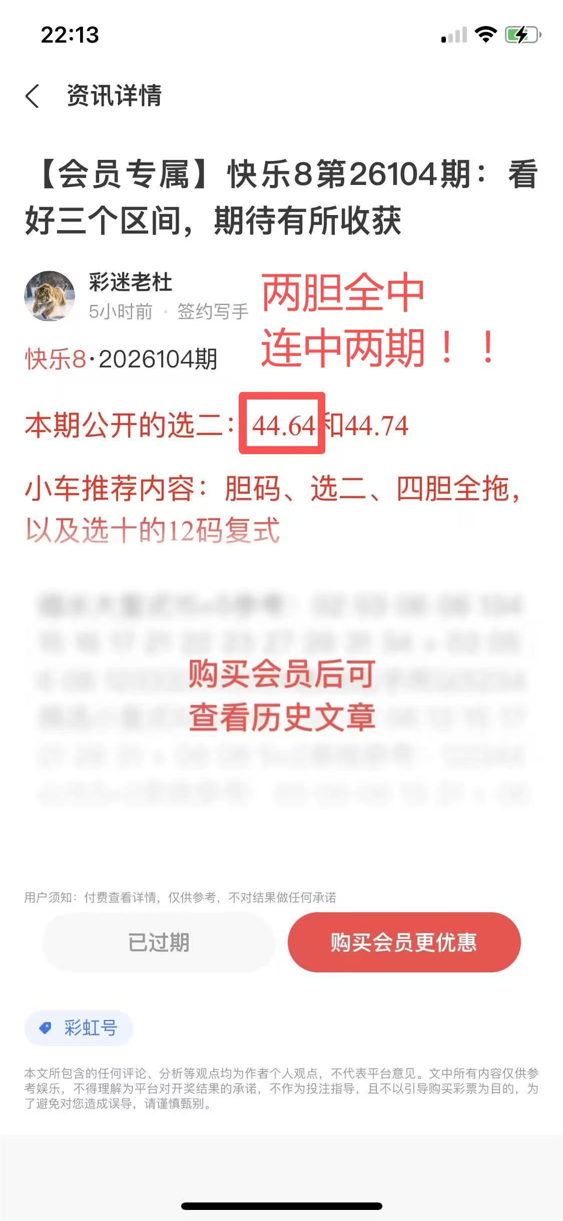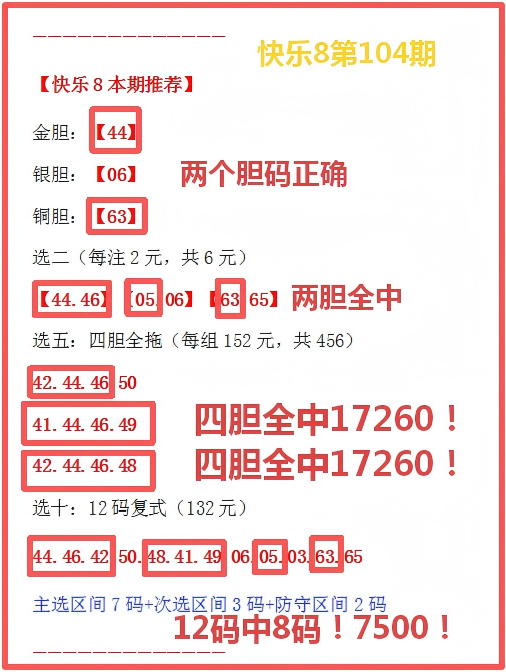 104期会员文章:两组四胆全拖中17260元!