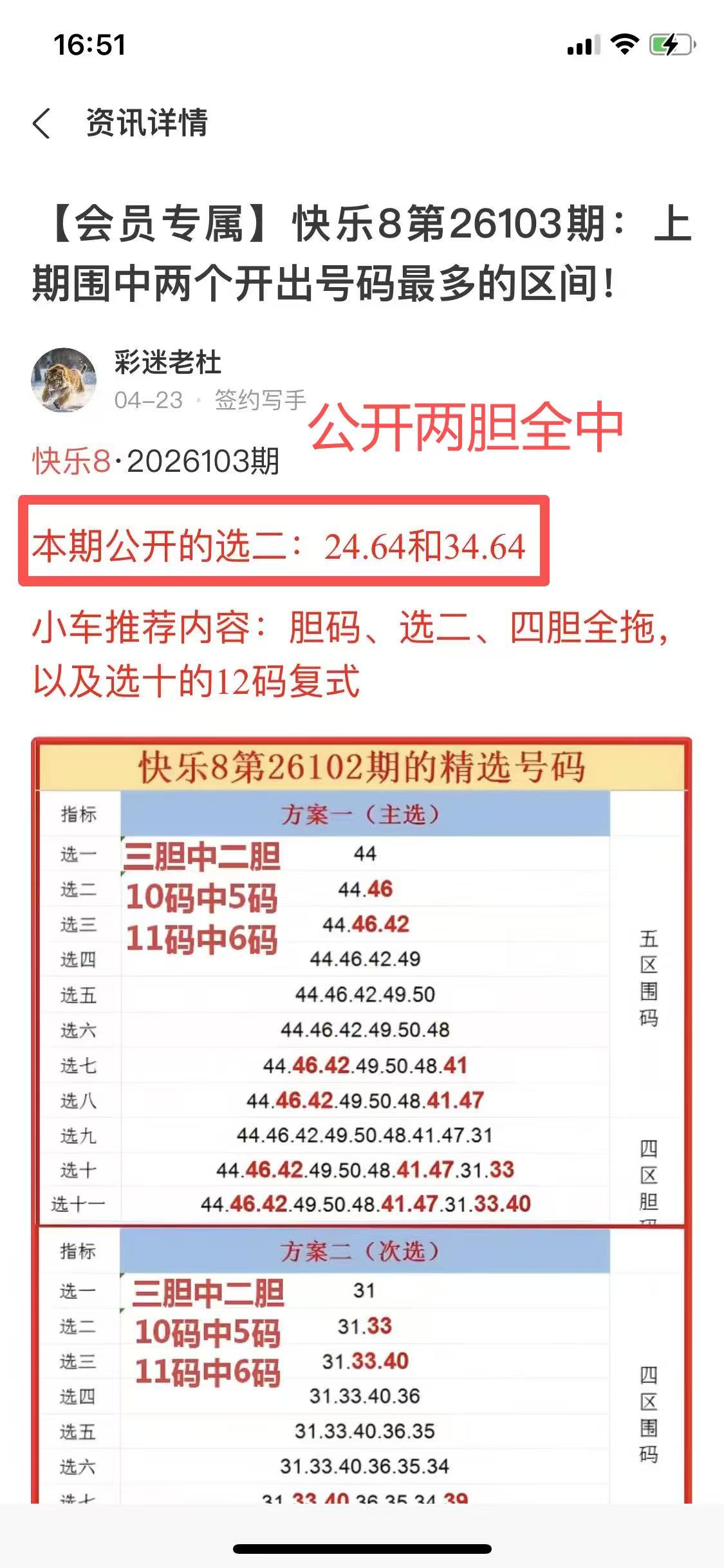 快乐8第26106期:本期公开的选二依旧很不错!