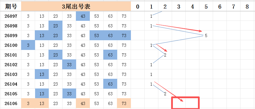 三尾上期开出两码走势,前半部分号码看好号码03和号码13的开出,分别是一区和二区的号码走势。后半部分号码看好号码43和号码73的开出,分别是五区和八区的号码走势。