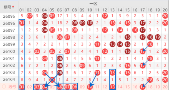 下图为01-20号数字区间走势分析图: