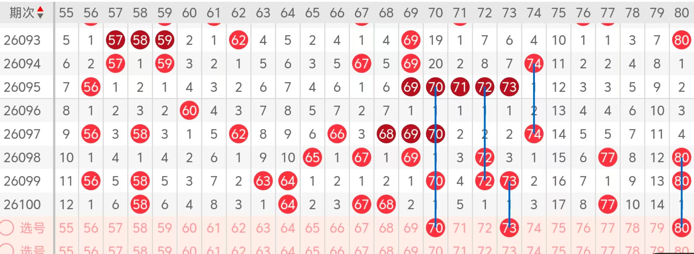 第四区间的走势分析:第四区间上期开出了四个号码球,主要的落号点位在四区间的前后半区,走出了两奇两偶的形态走势,上期四区间的前半区落下了三个号码球,后半区落下了一个号码球,整个四区间处于走冷的趋势,根据四区间的走势规律,今天的四区间我们主看70 73 80这三个号码球的落位,70走出了对称的隔期回补,80走出了重码隔2期的回补,73走出了隔一期的回补!这几个号码球的落位,这三个号球建议大家打个三胆拖,或者打个三码复二比较稳妥,参考为主!