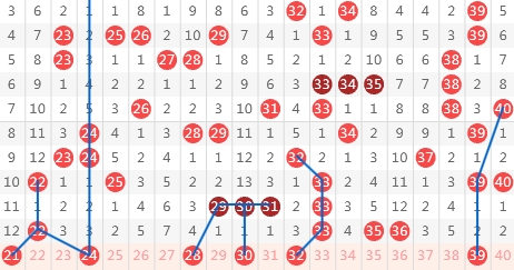 昨天开出了(22.33.35.36)4个号码球,区间号码走出温态4码落位,那么通过对二区间落位号码进行逆向思维逻辑分析,我们可以发现整个区间号码走出区域落位,区间前端22孤码下落,区间后端35.36姐妹对的落号,那么二区间的走势在本期落位后趋势回调的可能性最大,所以我们在二区间进行操作时一定要考虑边码的落号点,本期预测这个区间号码在3-5码