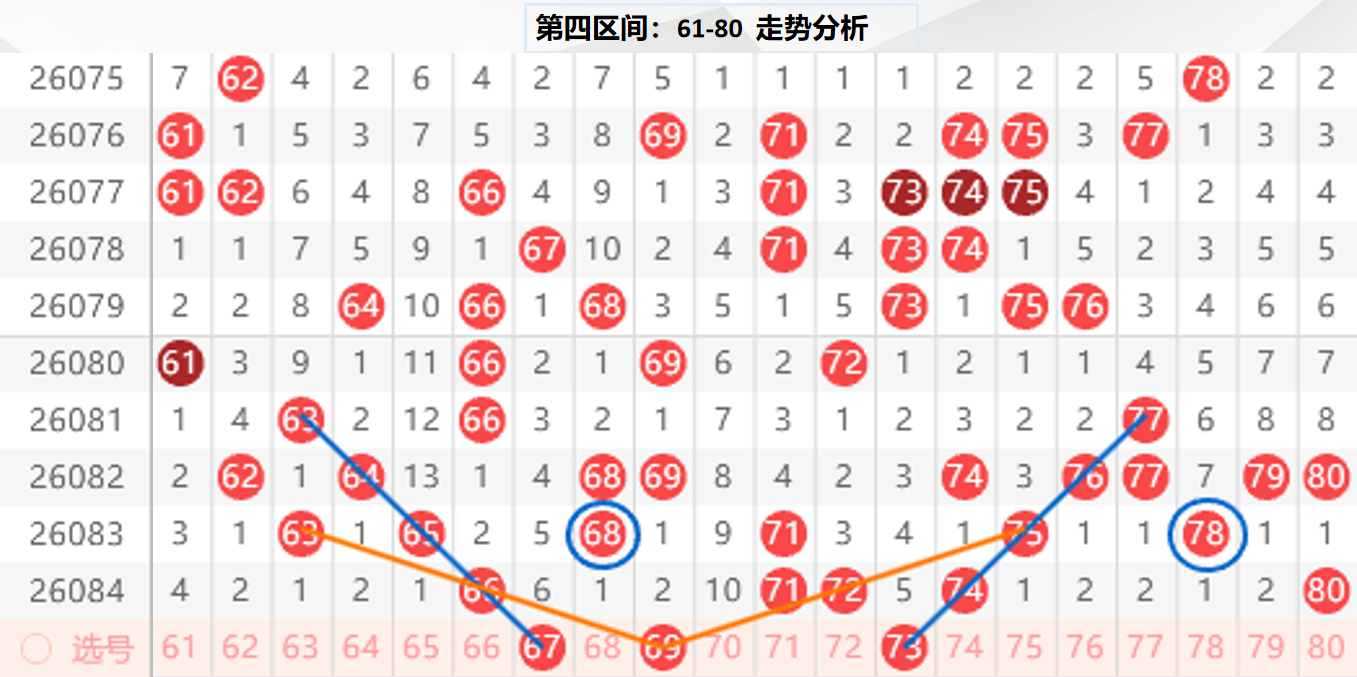 四区分析:【61-80】(走势图标注号码非小黄车大底,请谨慎参考,具体思路将在直播间分享讨论)