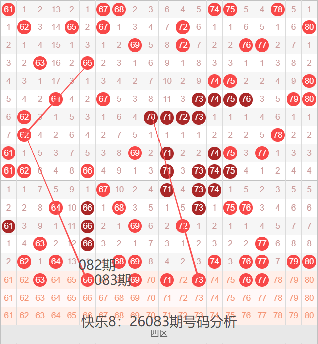 四区间61-80号码球走势,如下图: