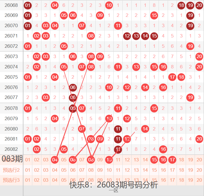26083期,我们先看下一区间:01-20号码球,如下图: