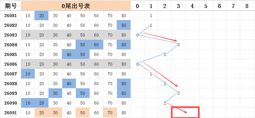 本期看好开出的范围是两码走势至四码走势之间。0尾上期开出两码走势,前半部分号码看好号码20和号码30的开出,分别是二区和三区的号码走势。后半部分号码看好号码50和号码70的开出,分别是五区和七区的号码走势。