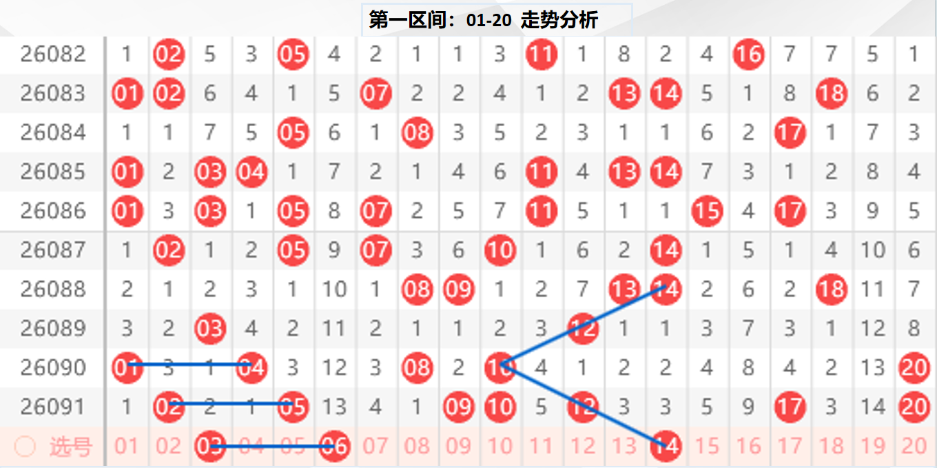 一区分析:【01-20】(走势图标注号码非小黄车大底,请谨慎参考,具体思路将在直播间分享讨论)