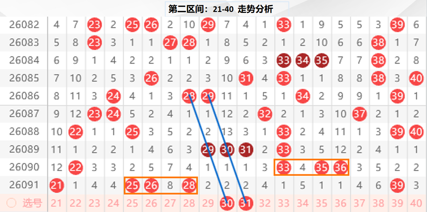 二区分析:【21-40】(走势图标注号码非小黄车大底,请谨慎参考,具体思路将在直播间分享讨论)