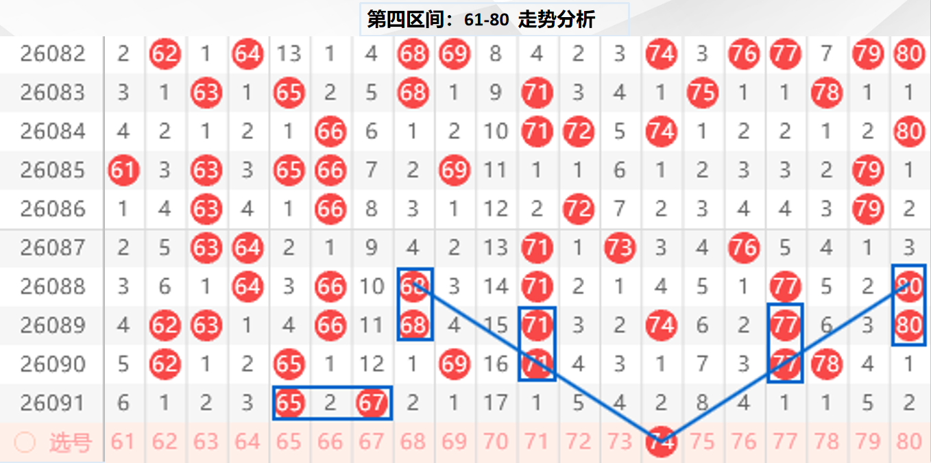 四区分析:【61-80】(走势图标注号码非小黄车大底,请谨慎参考,具体思路将在直播间分享讨论)