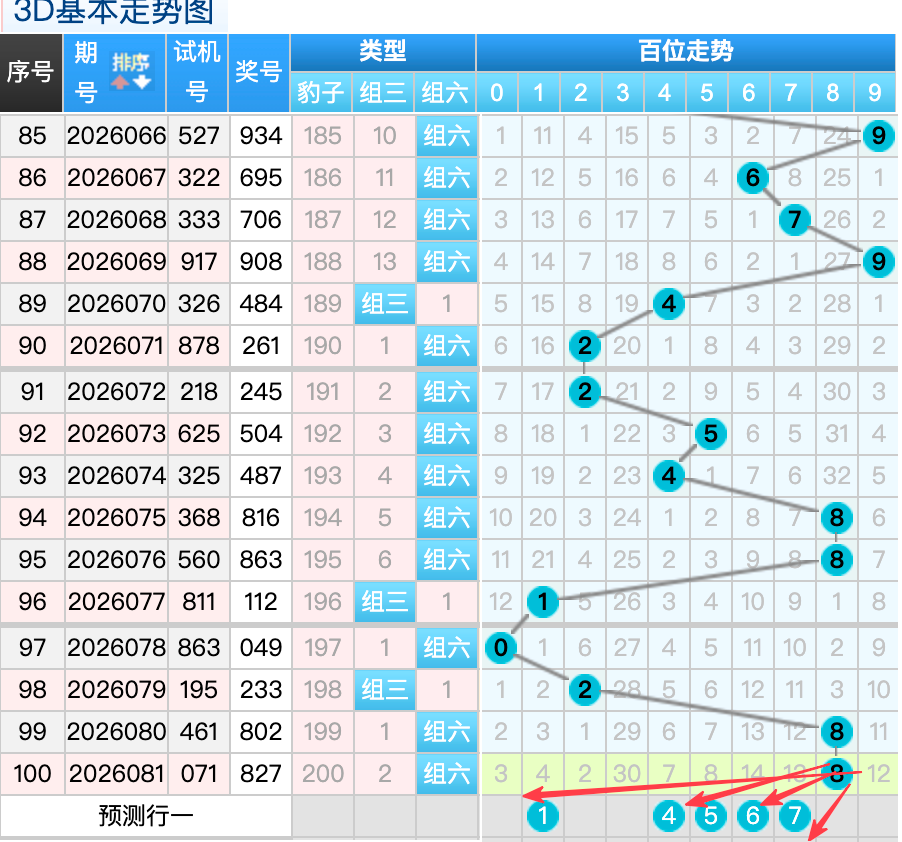 上期3D十位开出的奖号是2号,上期在十位上2号球这个号码是一个冷号码的落位点,本期来看3号在十位上要注意这个号码是有机会继续走出顺位落位的趋势这里的号码回补形态注意防守就好,再来6号球这个点位注意防守走出常搭配的热码落位趋势。9号球这个号码是小号拉拽大号的落位码回补要注意参考。0号球要注意走出折返码的概率