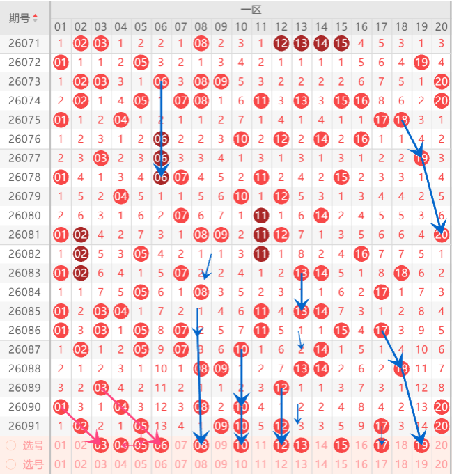 一区在近期的走势分析,近期一区间是一个温热形态,上期一区间直接爆区开出了7码,而且上期区间开出的形态是重码空位和斜连号走势,上期小妹在文章中布局到了5码开出,那么本期一区间重点 关注的形态是斜连号下拉,孤码分边,重码走势,首先本期注意斜连号下拉位置上布局03.06.08.中选择1-2码下拉机会,而孤码分边上注意11.13.16.18中参考一码分边机会,至于重码走势上布局02.05.10.17中防守1-2码走重机会,上期重点关注在重码回补上开出了1码,那么本期重点关注在空位回补上布局一码订胆机会,如图所示