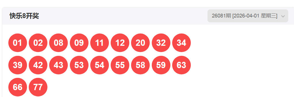 “专注快乐8,开心快乐吧!”您好,我是九尾锦鲤,有幸与您在这里相遇。上期(快乐8第2026081期)分析和推荐部分正确!今天组号上会继续努力!小车方案已精选优化,期望对您今天的选号、组号有所帮助。下面是我关于快乐八2026年第082期的走势研判分析及精选推荐。