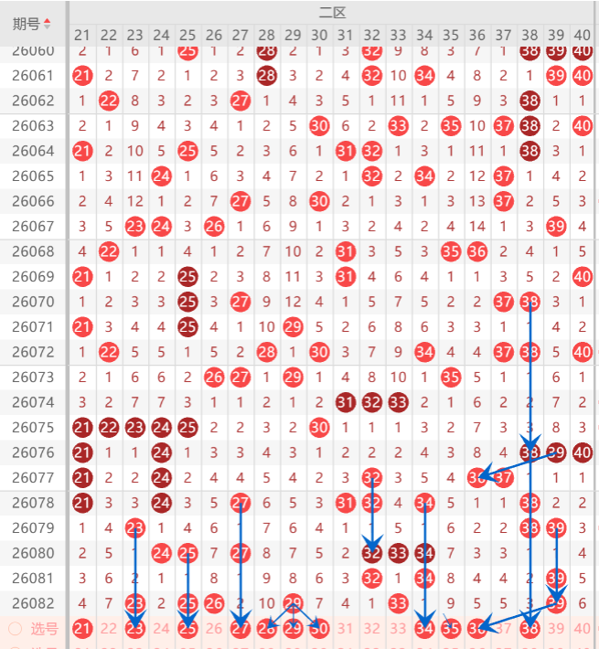 二区间注意打底号21.23.26.27.28.34.35.36.38.40中关注3-4码开出机会,
