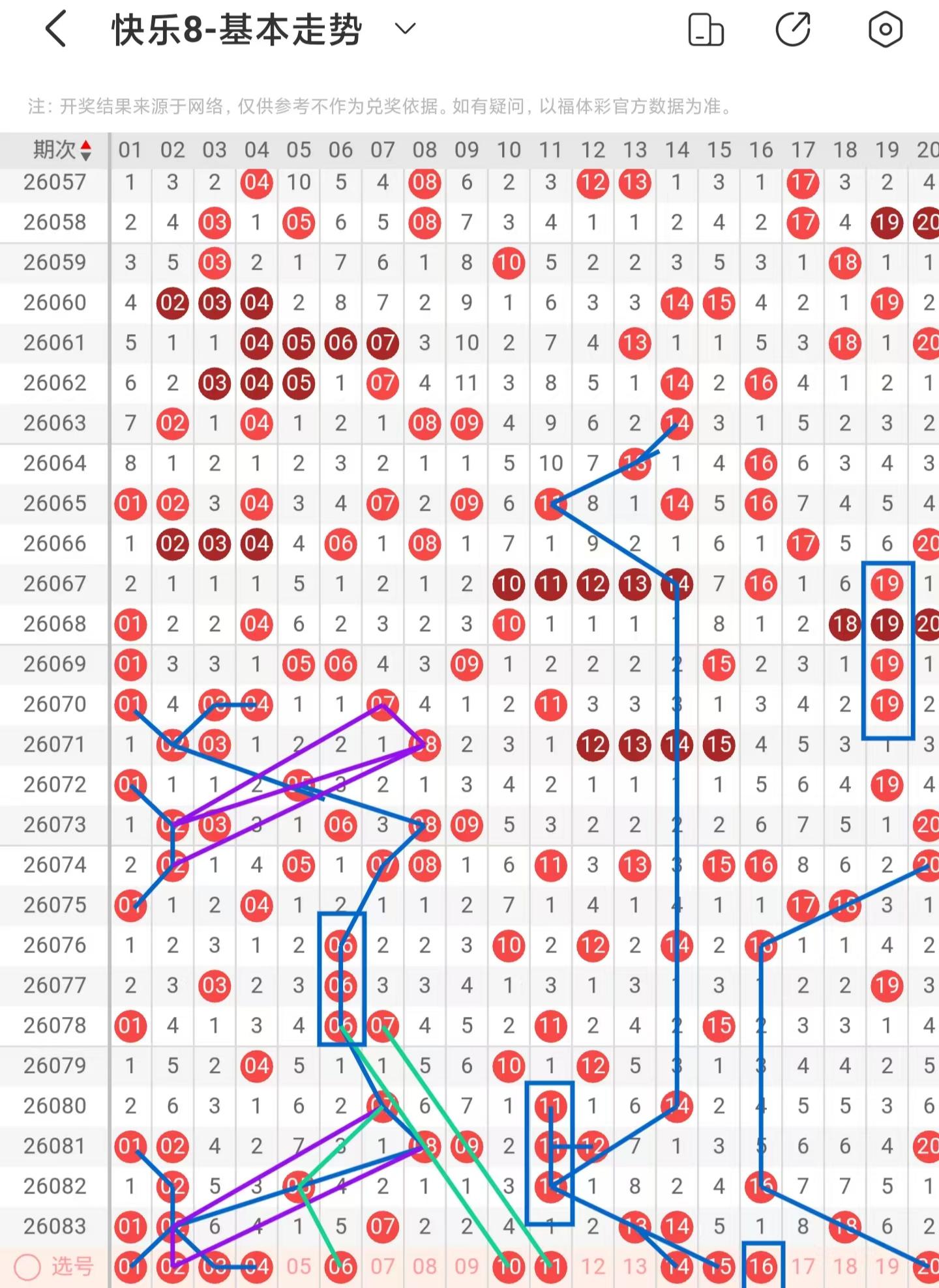 快乐八2026084期出号分析,上期区间分析选二复式中