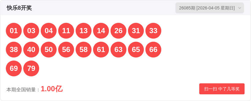 快乐826085期开奖结果01 03 04 11 13 14 26 31 33 38 40 50 56 58 61 63 65 66 69 79,四区比6:5:3:6,和值尾1,二十区比3:0:1:2:0:0:1:1:1:20:0:1:1:1:2:2:1:0:1,和值781。