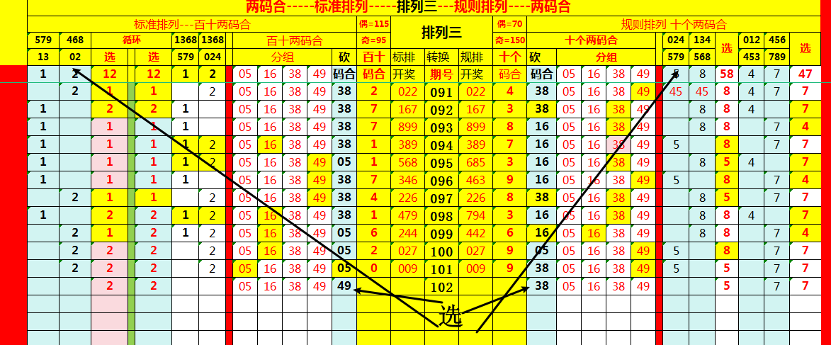 百十两码合用“标准排列”分析;