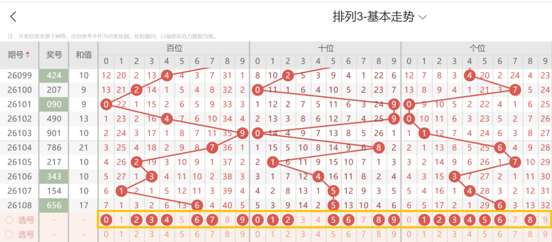 百位:上期百位 6(大数偶数),本期大数降温;淘汰冷态极端号,以小号热码 + 中位温码组合,适配 1 大 2 小结构,路数均衡全覆盖。