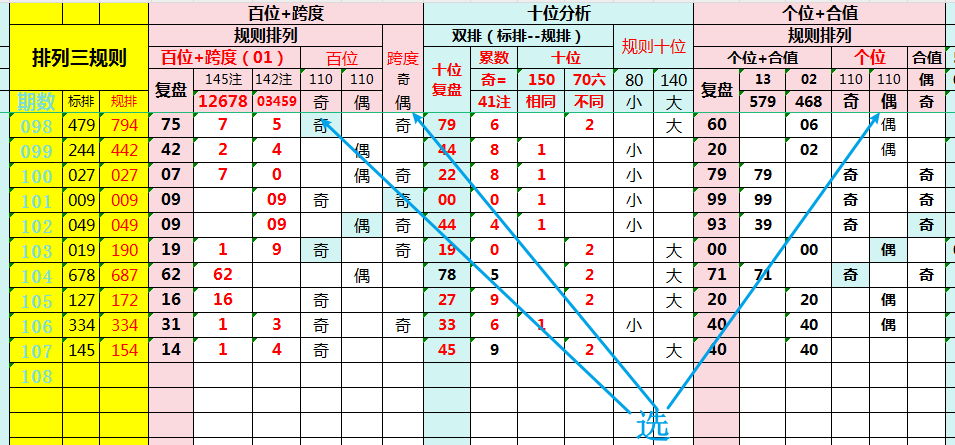 排列三第108期“规则排列”组选分析!