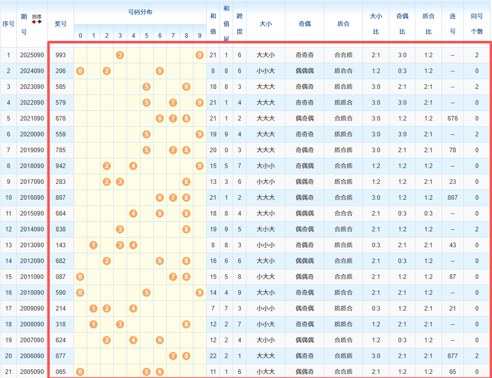 本文分别通过三个方面对本期排列三进行深度分析,这三个方面分别为:一:历史追随、二:往年同期数据、三:近期百十个遗漏值情况。
