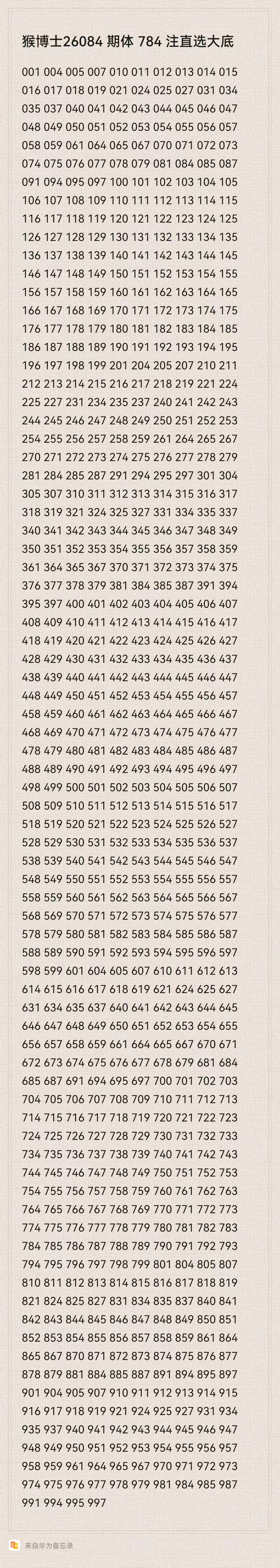 猴博士26084期排列三784注直选大底:(可以当母底用,然后进行缩水)