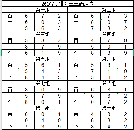 附10组稳定性极高的三码定位(最近26期中8期直选):