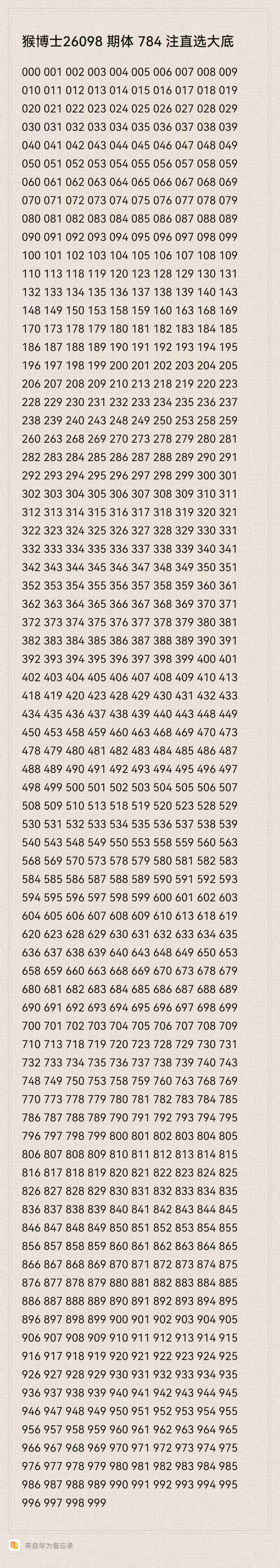 猴博士26098期排列三784注直选大底:(可以当母底用,然后进行缩水)