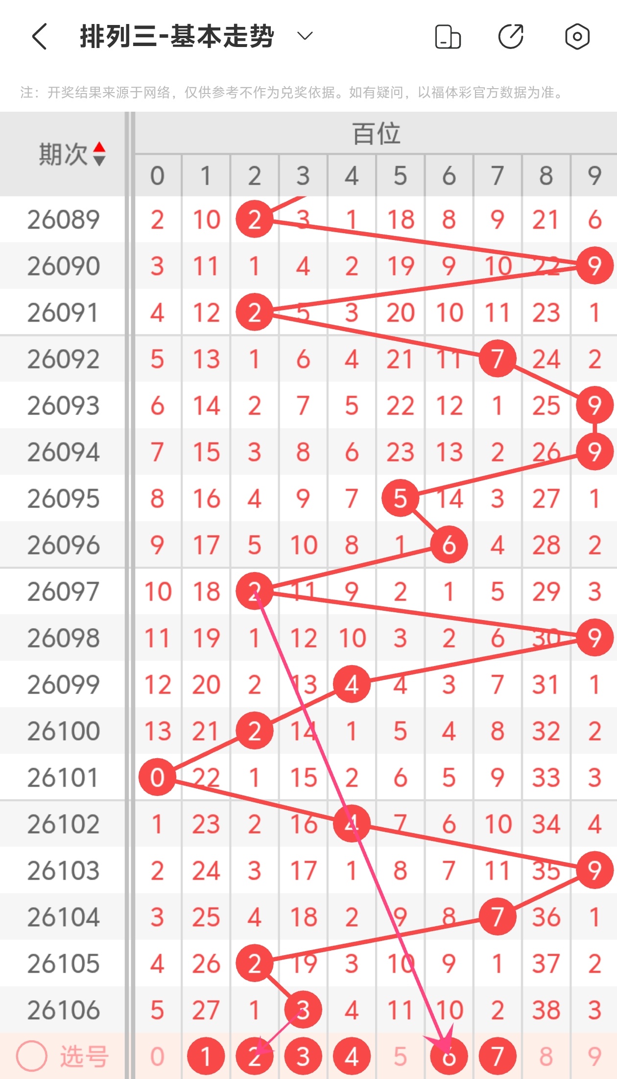下面是体彩排列3的百位走势图分析