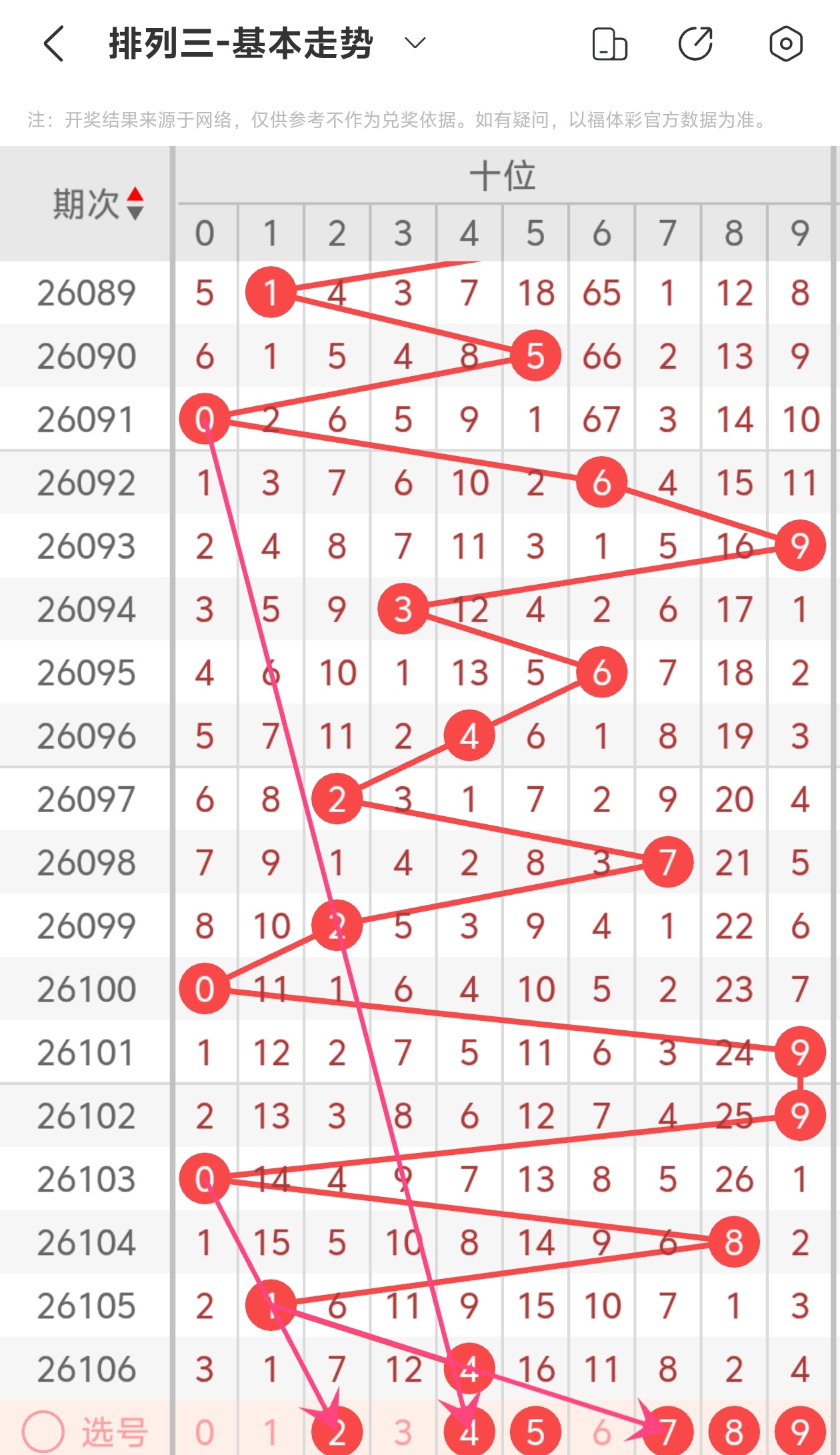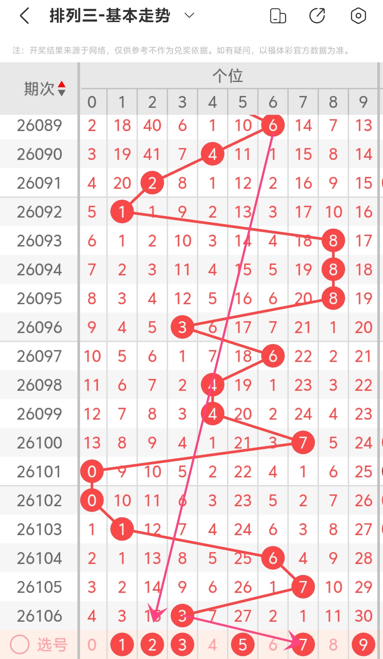 下面是体彩排列3的个位走势图分析